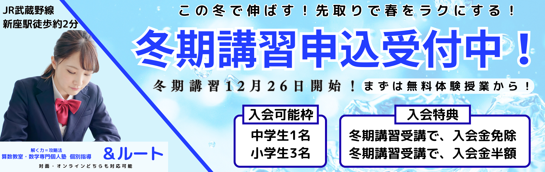 冬期講習も一緒に受講の場合は、入会金免除!