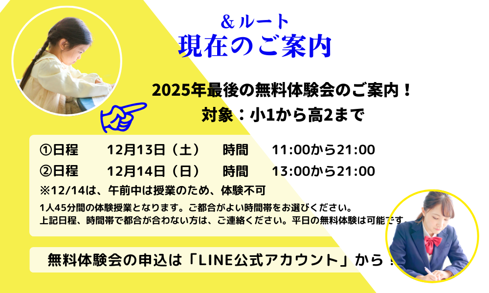 冬期講習会前最後!12月無料体験会開催のお知らせ!